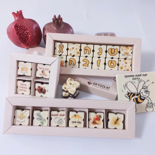 פרלינים ממותגים עם לוגו , וטבלאות שוקולד בטעמים עשירים - כולם בהידור כשרות .