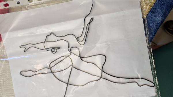 יצירה צבעונית וממכרת עם חוטי מתכת.