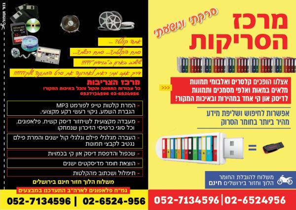 מרכז הצריבות - המקום שבו זיכרונות נשמרים, קבצים ניצלים והכל באיכות שאין לה תחליף.