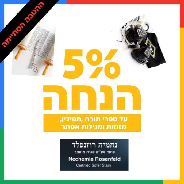 5% הנחה על ספרי תורה תפילין מזוזות ומגילות אסתר